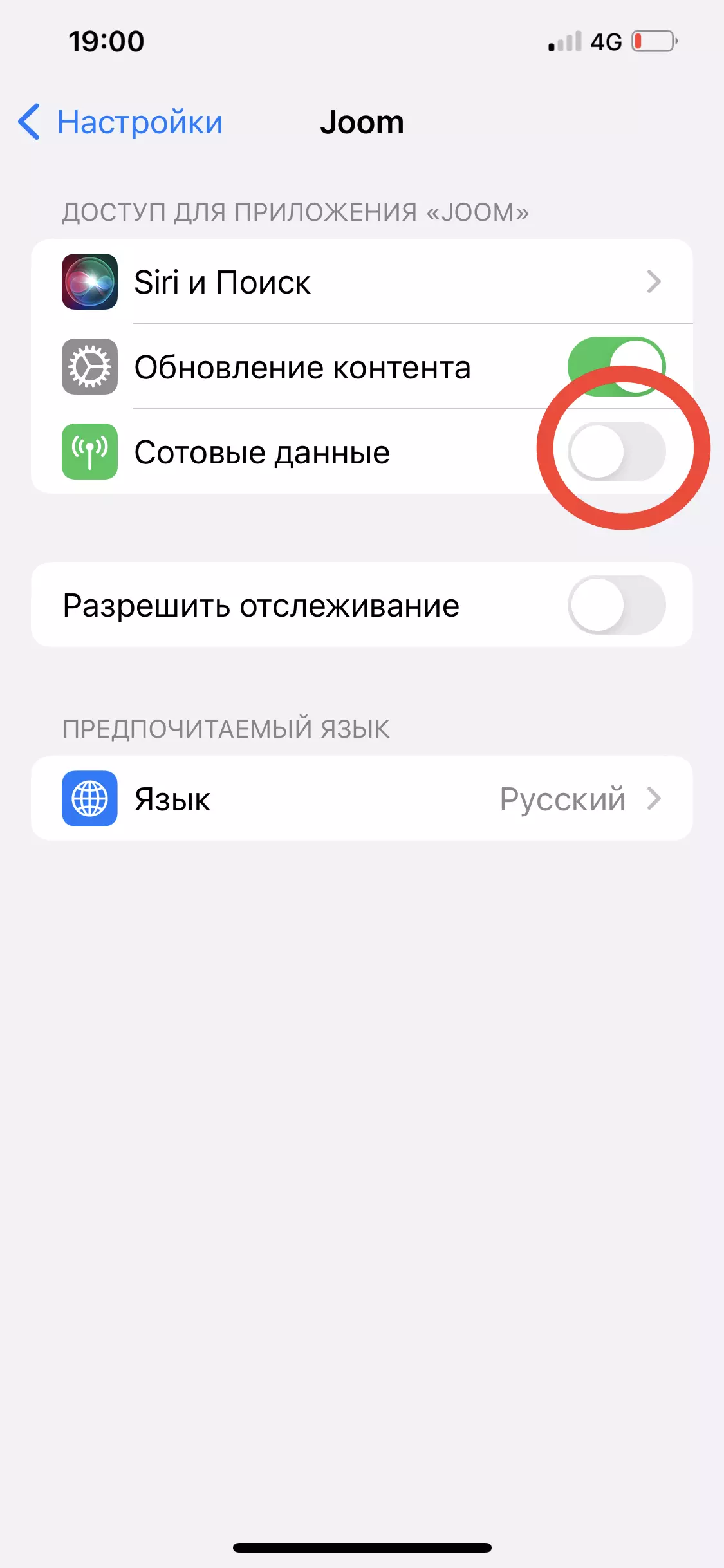 - Деактивировать опцию «Сотовые данные».